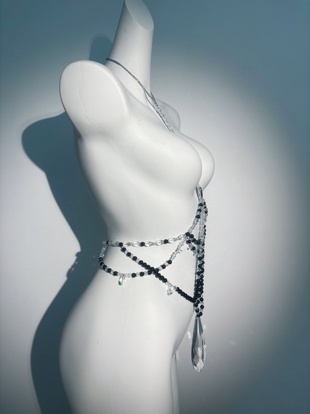 This stunning piece is crafted from the finest materials to exude an air of unparalleled luxury and sophistication. It adorned with man made crystal and natural obsidian, not only enhances your visual appeal but also radiates elegance that captivates every glance.