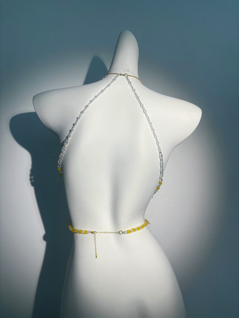 The inspiration of the color choice was from honey. Orange-ish yellow crystal represents the most beautiful sunset in your life. As the sunlight shines on the body, your skin even become extra dazzling.
