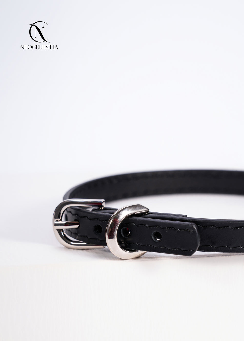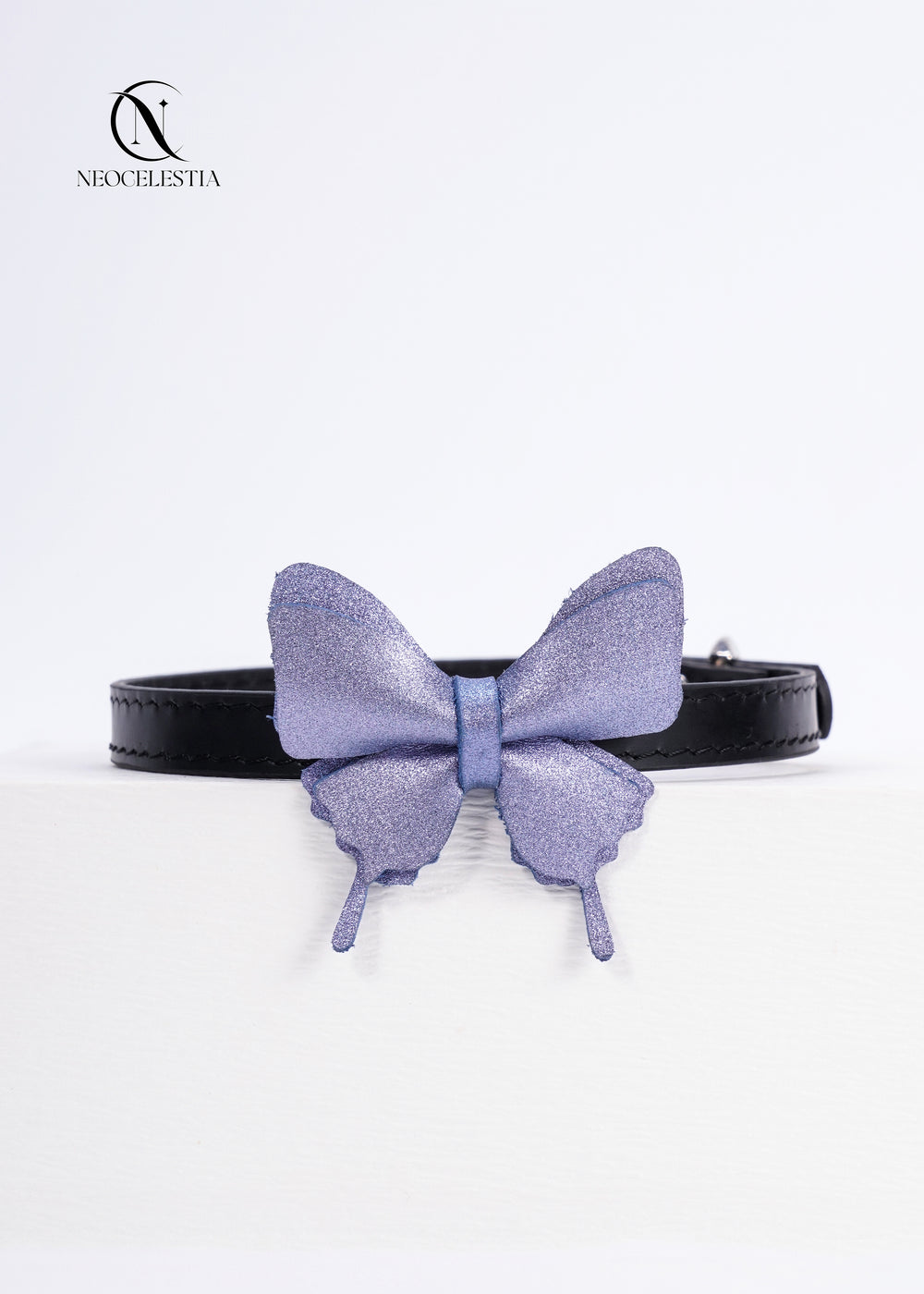 For the quiet aristocrat of the night. This choker carries a secret on a wing—a butterfly, meticulously sculpted from shimmering blue leather, poised in eternal flight against a band of the softest black hide. It is a whisper of a dream caught between shadow and elegance, an heirloom for the soul that finds freedom in the dark. Wear the emblem of your silent transformation.