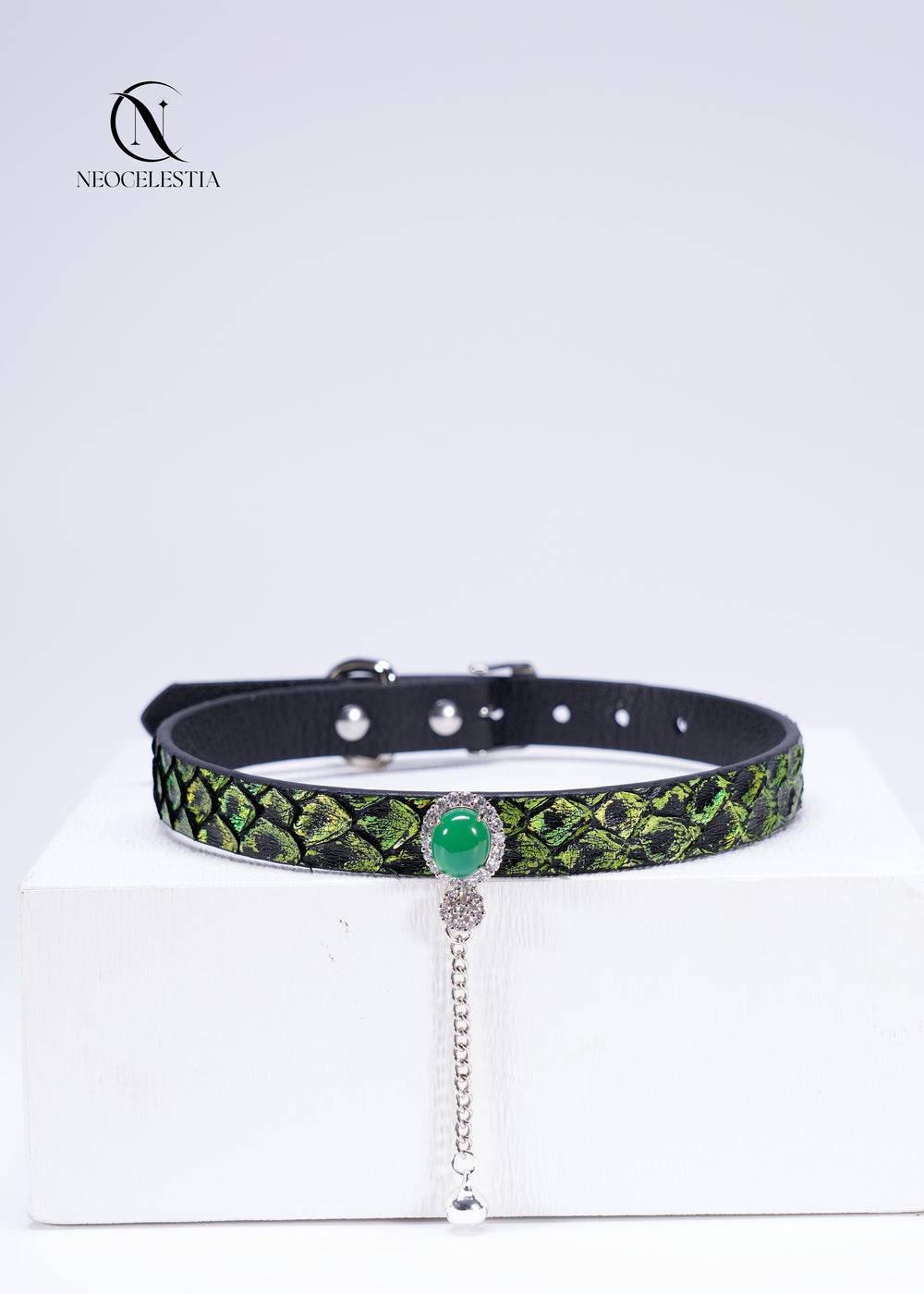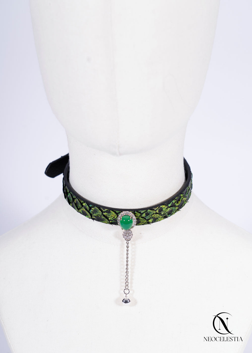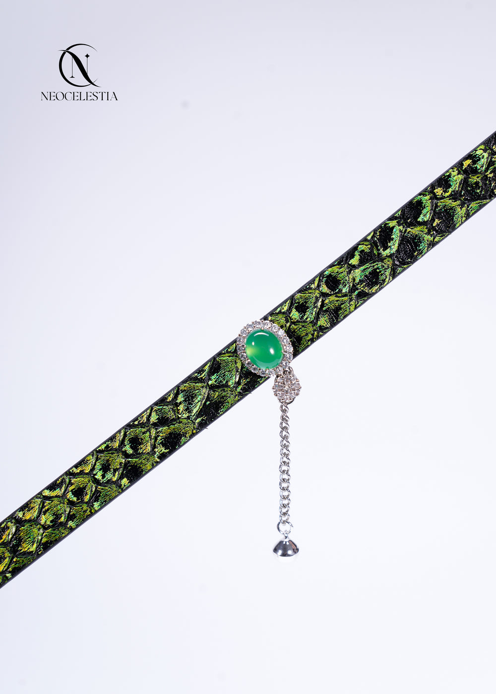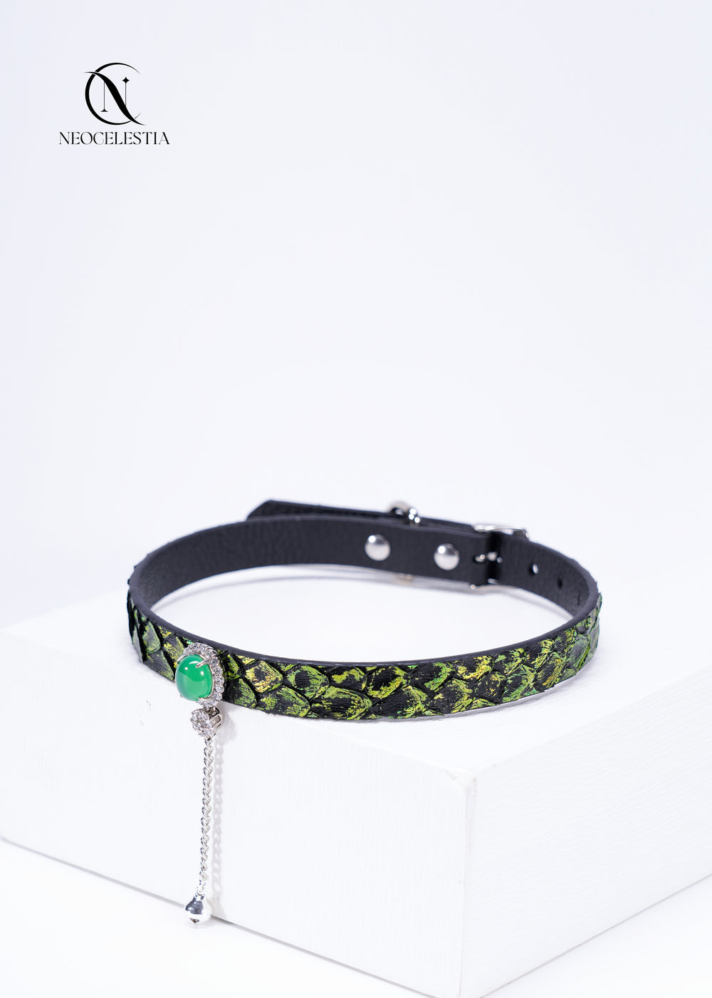 "Handcrafted python hide choker with agate—wildwood nymph's flickering spirit meets untamed elegance, a wearable ode to forest's enchantment."